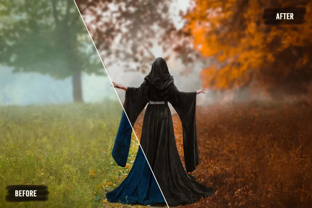 Transform your photos into breathtaking autumn scenes with these 50 easy-to-use Photoshop Actions. Whether you're aiming for the cozy, colorful essence of fall or a spooky Halloween twist, these actions will enhance your images with just a few clicks.