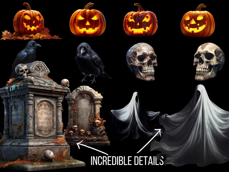 Transform your photos and artwork with this Halloween PNG Bundle, packed with 100 high-resolution overlays featuring eerie elements like ghosts, pumpkins, skulls, witches, and more! Whether you're working on Halloween portraits, digital art, or creepy composites, these overlays are perfect for adding a haunting touch to your creations.